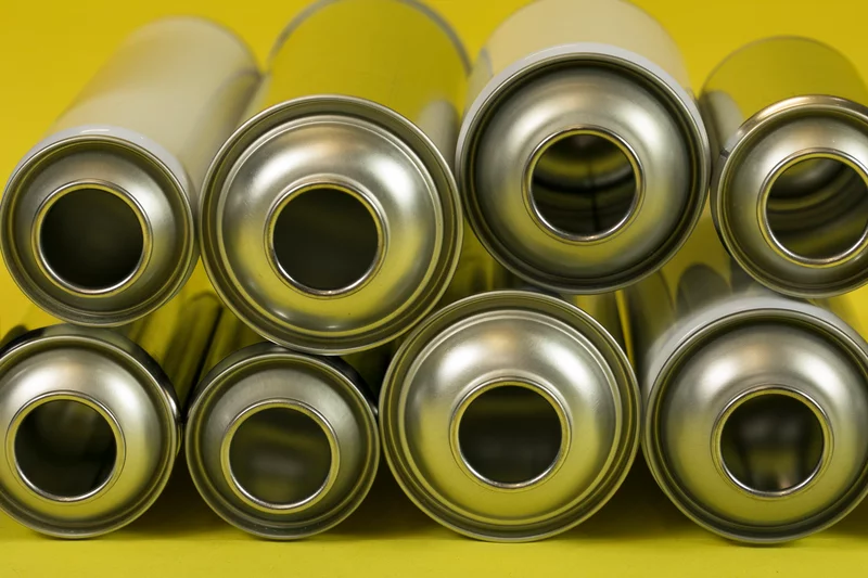 قوطی های اسپری تحت فشار با محصولات پر می شوند و به اتمسفر داخلی ۱۵ تا ۱۸ بار می رسند. تکمیل مطابق با استانداردهای بین المللی آنها را ارائه می کند. داخل آنها بدون پوشش است. در قسمت بیرونی ممکن است ساده یا با طرح های سفارشی عرضه شوند.